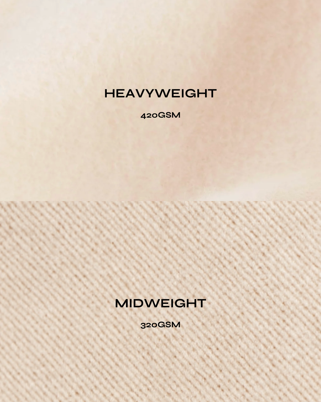 Heavyweight fabrics deliver a denser, more substantial hand feel with added structure and insulation. This makes them well-suited for cooler climates or those who prefer a premium, cozy, more durable finish.